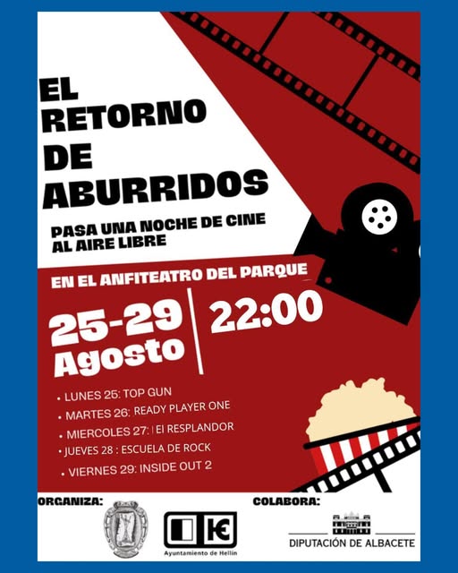 Del 25 al 29 de agosto disfruta de las mejores películas en el Anfiteatro del Parque Municipal a partir de las 22:00 h.